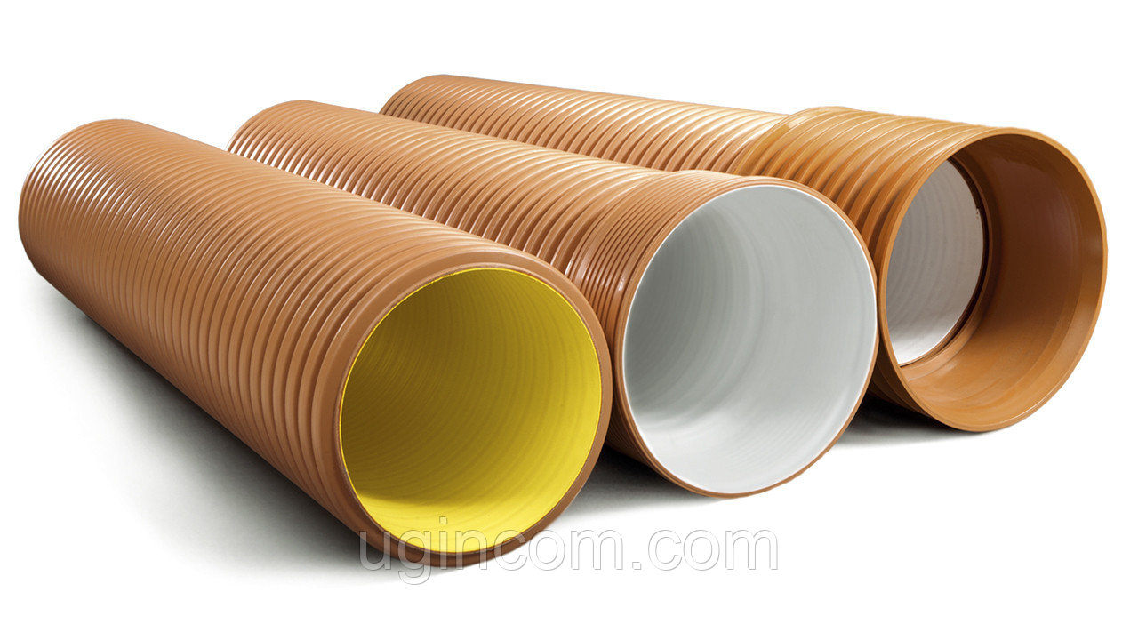 - В качестве исходного материала используется полиуретан. Способ производства – двухшнековая экструзия. Стенки внутреннего слоя абсолютно гладкие. Наружный слой представляет собой прочную гофру.
